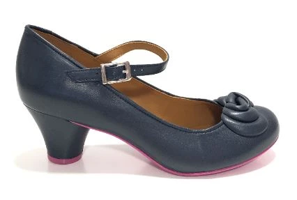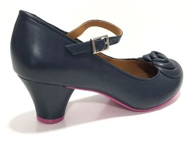 This classic mary-jane by Cristofoli Shoes is in an versatile navy blue leather, with sweet ankle strap and adorned with simple elegant bow detail across the toe