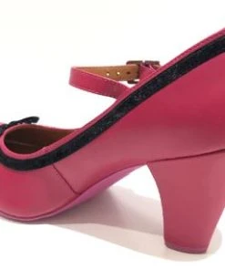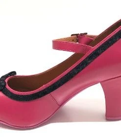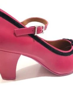 This vintage inspired Cristofoli Shoe is both timeless and elegant. Part of our Paris Boudoir inspired Collection, this beautiful shoe is in a vibrant hot pink leather, and it is adorned with a simple and very pretty black velvet ribbon, It also has an adjustable ankle strap for the perfect fit. It’s a fun twist to the classic pump