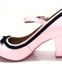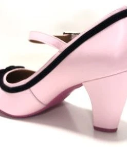 This vintage inspired Cristofoli Shoe is both timeless and elegant. Part of our Romance inspired Collection, this beautiful shoe is in a very pretty soft pink leather, and it is adorned with a simple and very pretty black velvet ribbon, It also has an adjustable ankle strap for the perfect fit. It’s a fun twist to the classic pump