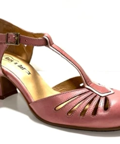 This vintage inspired Cristofoli Shoe is both timeless and elegant. Part of our Romance inspired Collection, this beautiful shoe is in a very pretty soft pink leather, and it is adorned with a simple and very pretty black velvet ribbon, It also has an adjustable ankle strap for the perfect fit. It’s a fun twist to the classic pump
