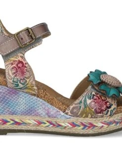 Beautiful Wedges by Laura Vita France, perfect for the warmer weather. These great wedges are as practical as they are gorgeous, with their adjustable ankle strap and adjustable placement over the top of the foot to fit any width. They are adorned with a super sweet flower that adds a fun little twist!