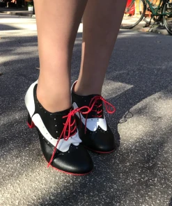 These lace up booties are Lola Ramona Staples. This classic little shoe is done in black and white, with a pop of colour in the red laces, which is so versatile for your entire wardrobe!